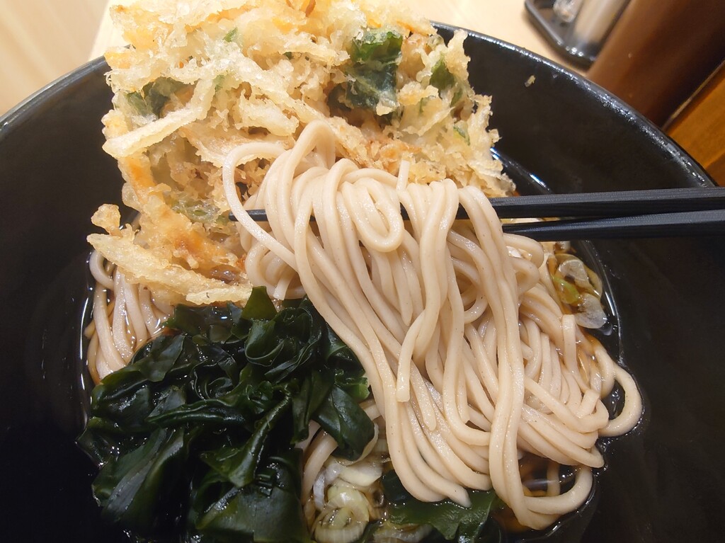 出汁が美味しいって思ったのですが、かき揚げとわかめがどんどんお汁を吸っていってお汁の量が少なくなったのがやや残念^^;