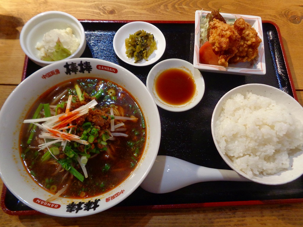 ↑人気の台湾ラーメンと迷ったけど、以前食べて美味しいと思った、「黒ごま担々麺・4辛」¥780と「ハーフ鶏のから揚げ」¥360をお願いします(^^)