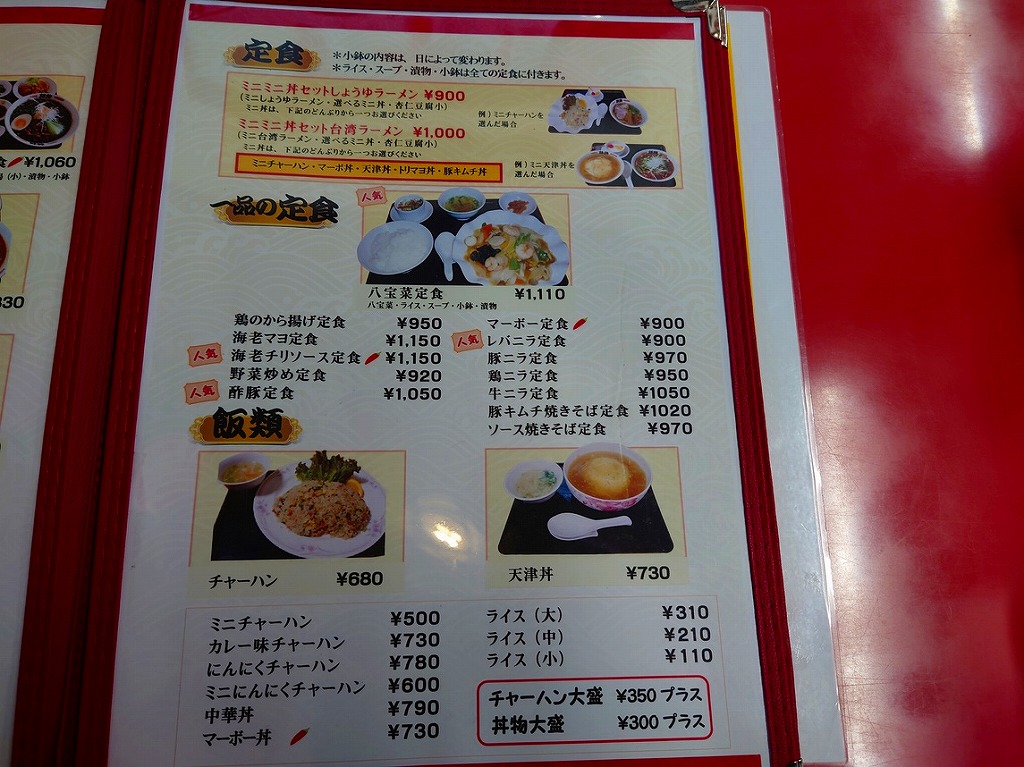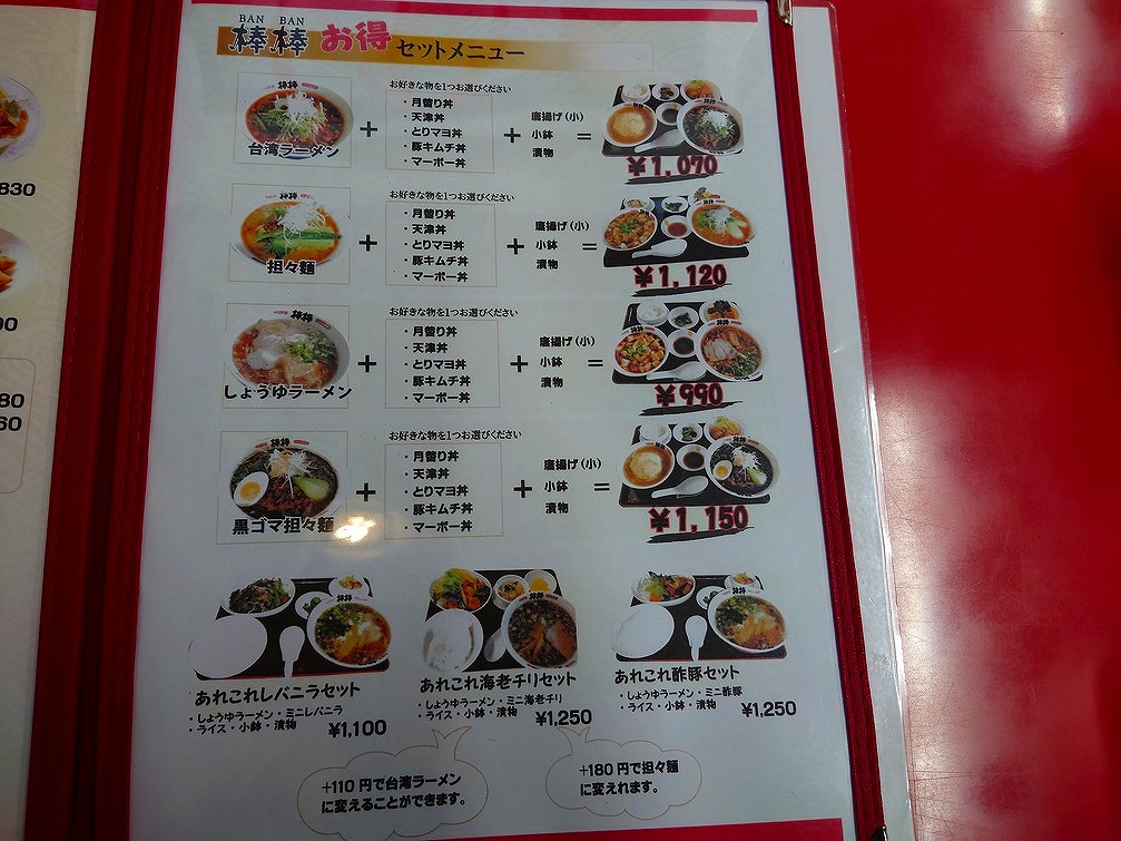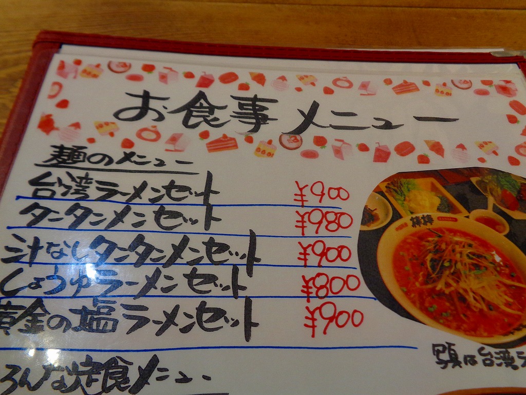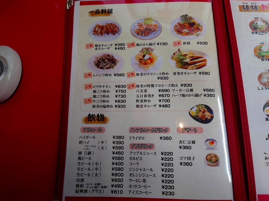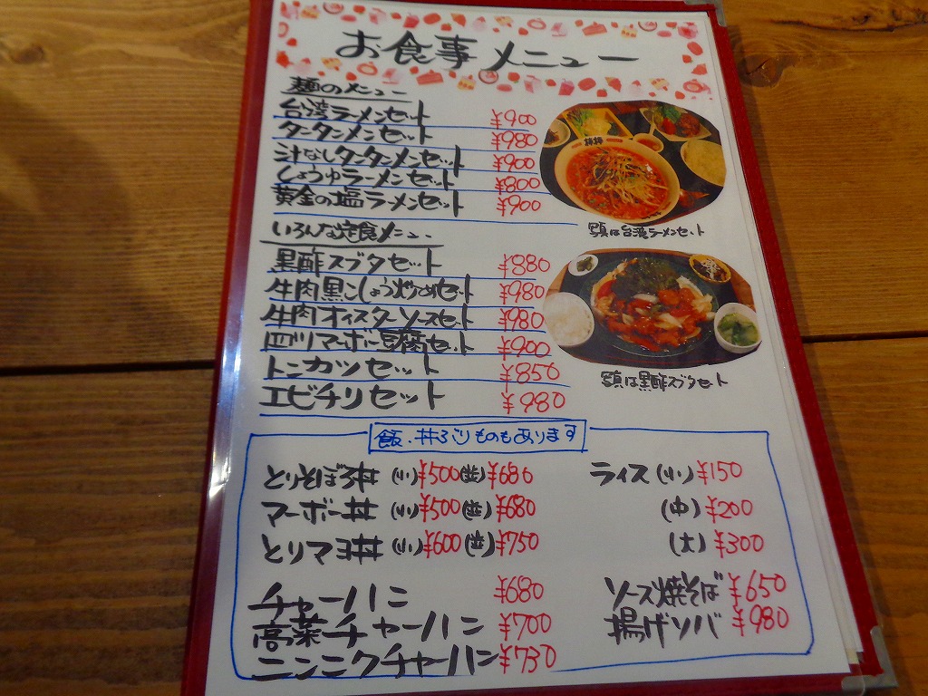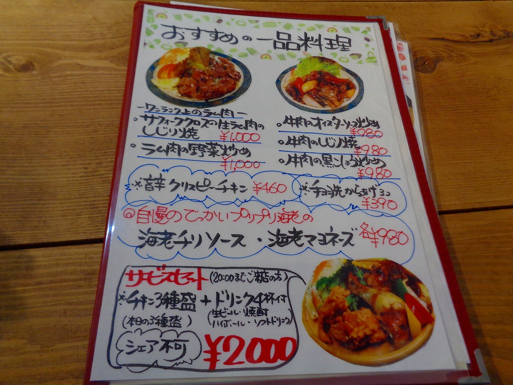 ↓お店に入り、メニューの一部はこんな感じです。