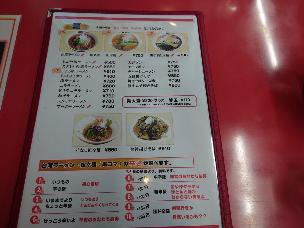 ごまの影響か、4辛でも台湾ラーメンの4辛よりは辛さはマイルドだと思います。