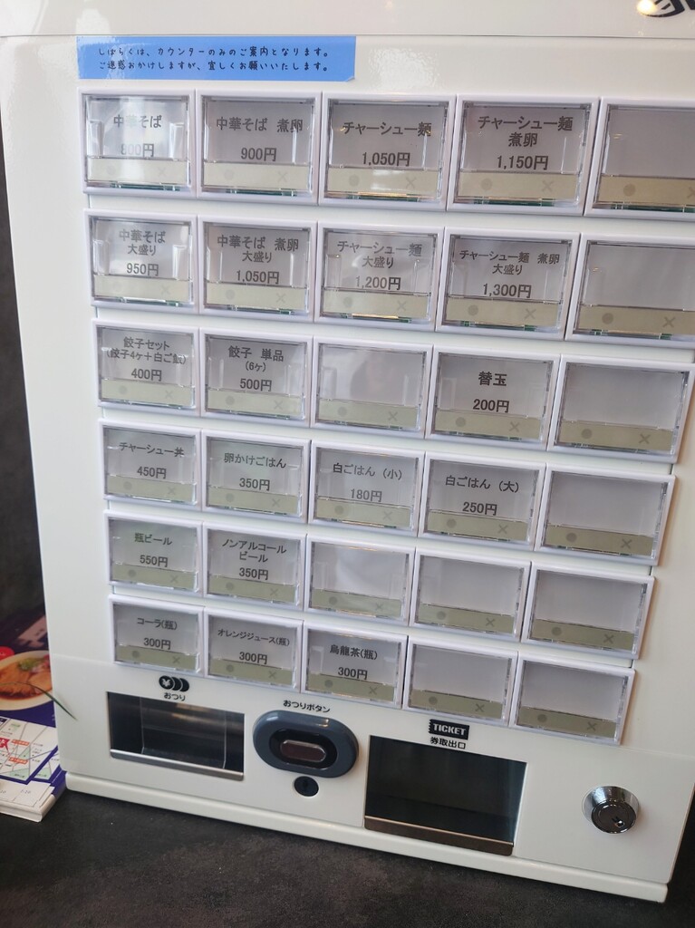 ↑今回は「尾道中華そば(大)」¥880の食券を購入します(^^)