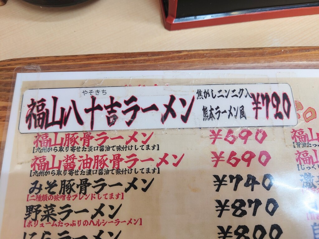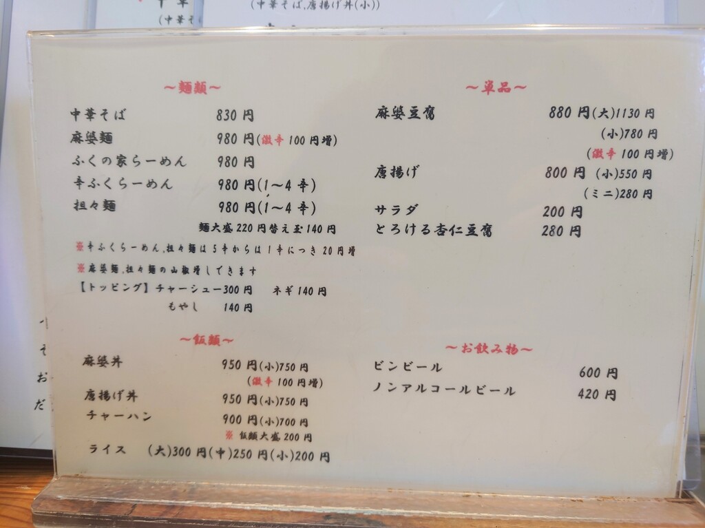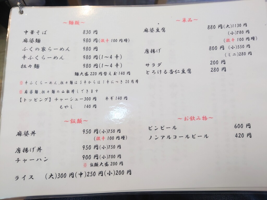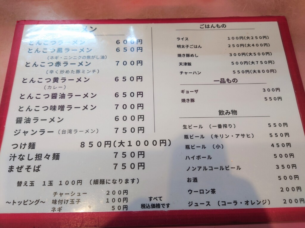 ↓お店は食券制ですが、券売機の写真撮れなかったので、お店入口にあったメニューをあとで撮っておきました^^;