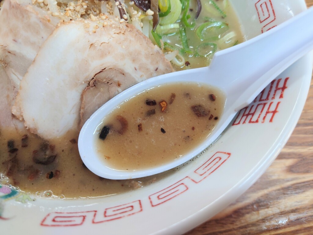 熱々のスープでたっぷりの背油。