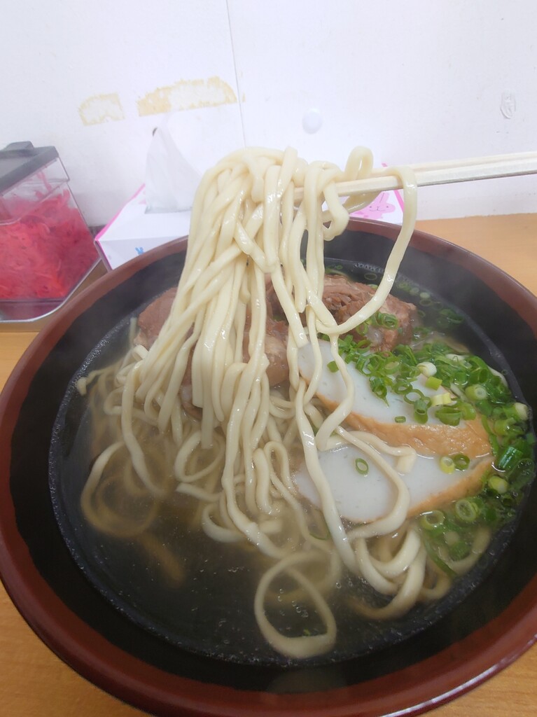 沖縄最後の日だったので、後悔しないよう麺は大盛りにしたのですが、ハイボリュームで食べ応えも充分(^^)
