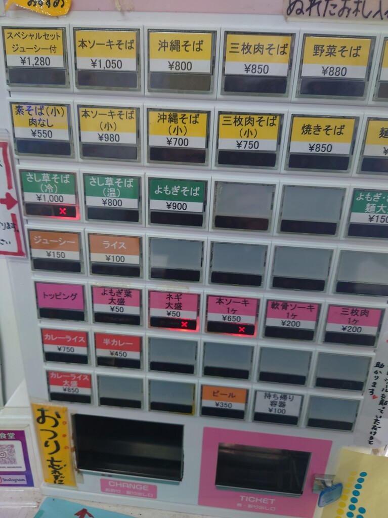 今回は「沖縄そば・麺大盛り」¥900の食券を購入します(^^)