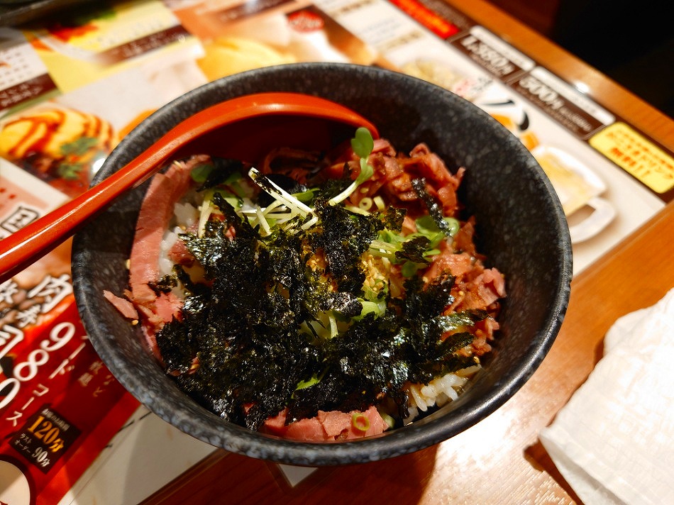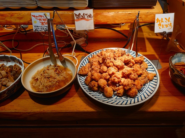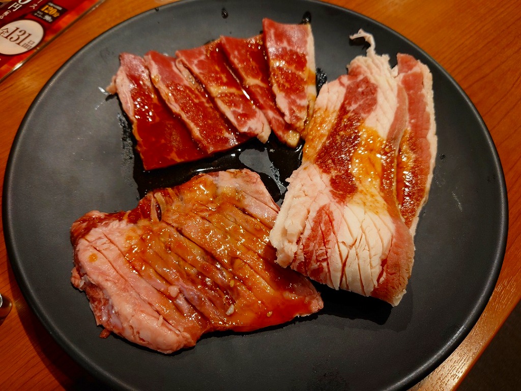 ↑以前、似たお店の「ゆず庵」で沢山食べれなかった思い出があるので、高いコース頼んでも沢山食べれなさそうなので、安めの「牛&豚食べ放題」¥2,529とアルコール飲み放題をお願いします(^^)