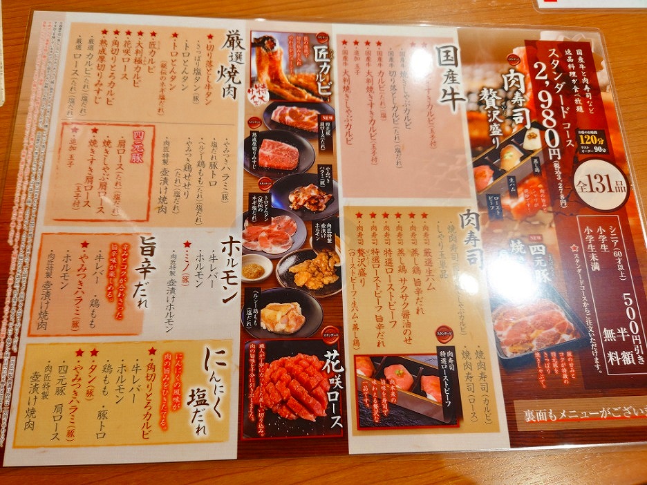 ↑お肉やお寿司以外のメニューなども豊富。