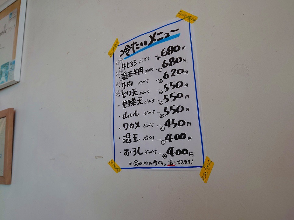 ↓お店入口横に置いてあったメニュー。