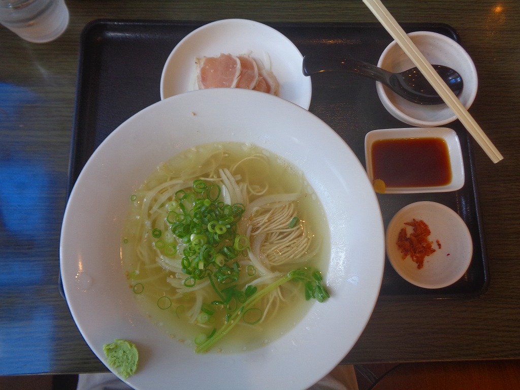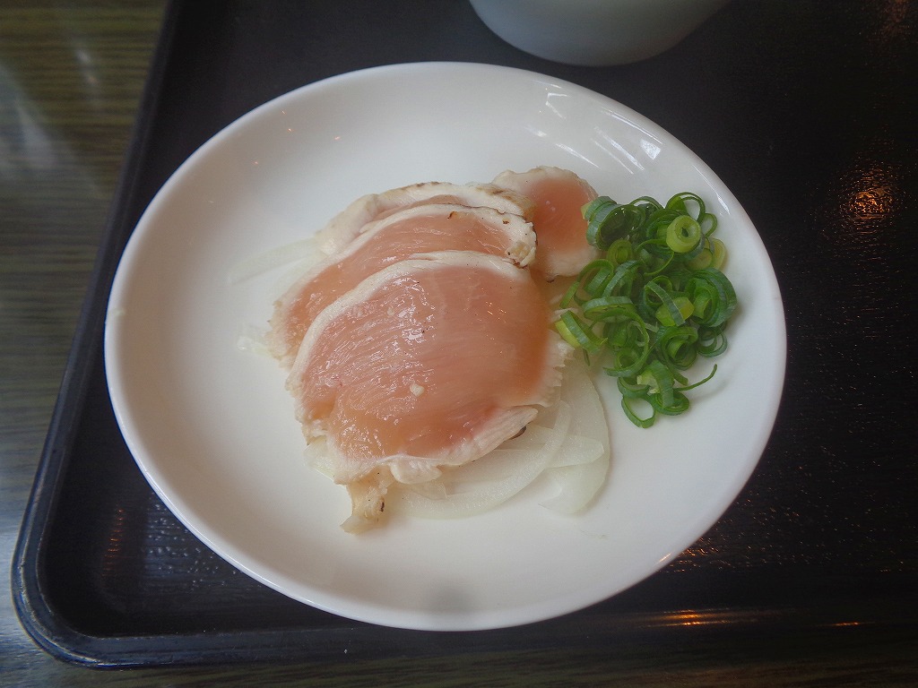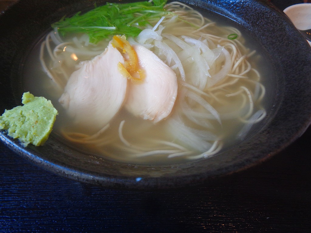 「あっさり鶏そば」と「ぼってり鶏そば」は食べた事あるので、今回は「朝びき 塩鶏そば」¥790をお願いし、鶏のたたきの「朝びき」は別皿でお願いします(^^)